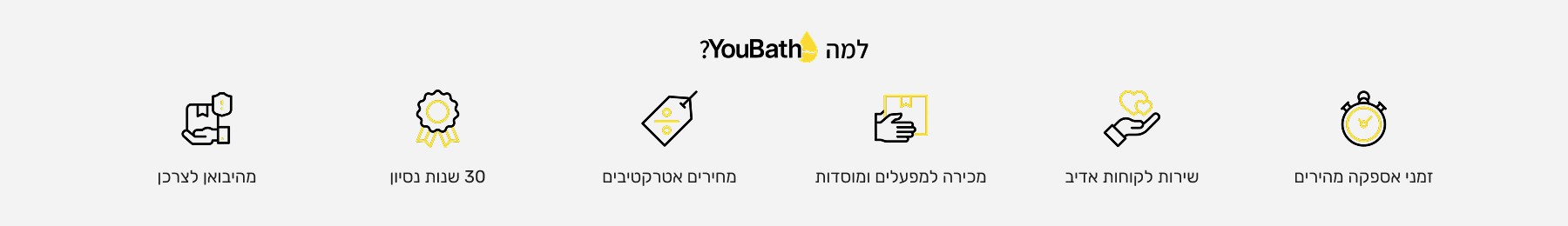 ✔ כל מוצרי האמבטיה במקום אחד – ב-YOUBATH תוכלו למצוא את כל מה שאתם צריכים לחדר הרחצה שלכם, במקום אחד!